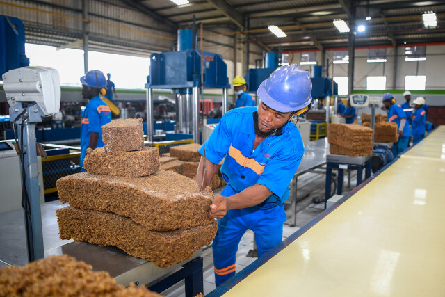 科特迪瓦迪埃奎市美兰橡胶加工厂,工人在橡胶加工生产线上工作。 湖南日报全媒体记者 傅聪 陈萌 摄
