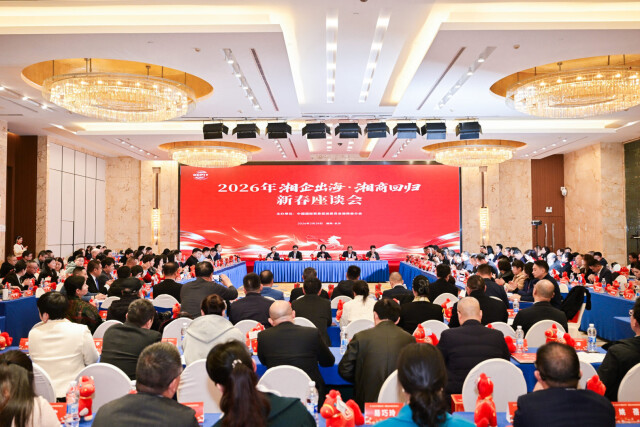 2月28日,湖南省贸促会在长沙举办2026年“湘企出海、湘商回归”新春座谈会,31家境外湖南商协会负责人、120余家“走出去”企业代表面对面交流,互通有无、分享经验,共同探寻湘企出海、产业出海的新机遇。