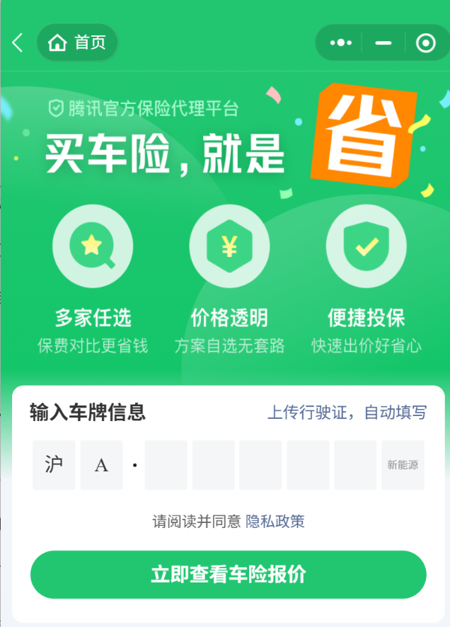 车主只需打开微信搜索“腾讯微保”小程序,或者直接在微信里搜“微保车险”,即可进入微保车险页面填写车牌号,快速获取多家保司的精准报价,车险价格、保障范围、理赔流程、客服电话等细节一目了然,轻松找到适合自己的高性价比方案。腾讯微保是纯网模式,可以实现更低的保费,更符合年轻一族的消费习惯和偏好,省下的钱车主可直接用于车辆保养、加油。